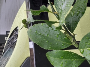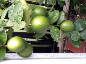 久々に見る我が家のレモンは少し色づいたようで、重たそうにしていました。