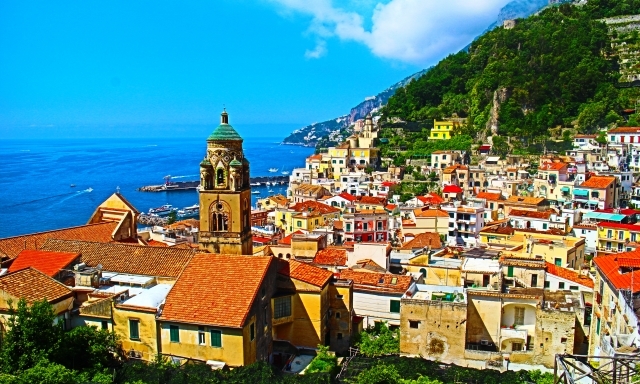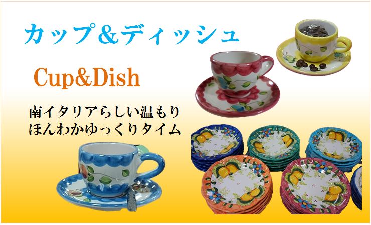 ポップでカラフル、ワクワクする絵柄の陶器、南イタリアの空気そのものです。